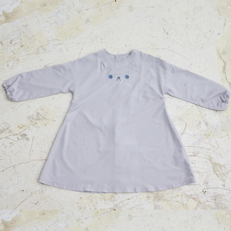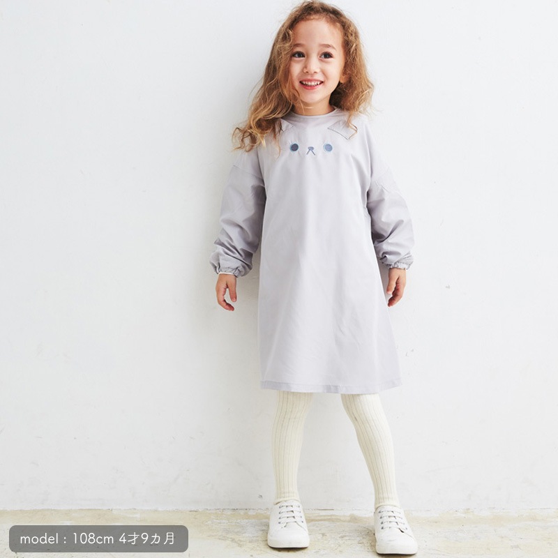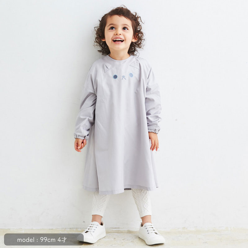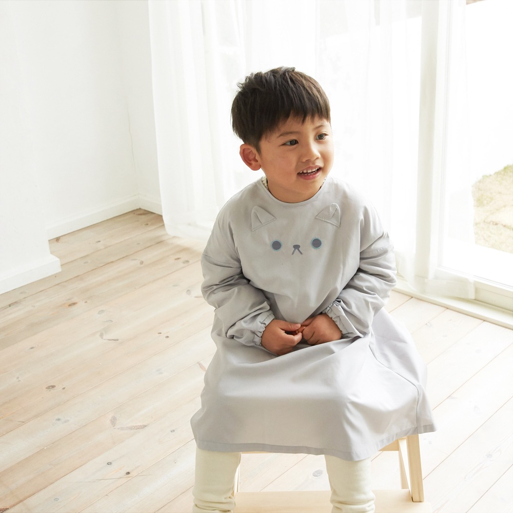 グレーねこスモック[キッズサイズ100-120]