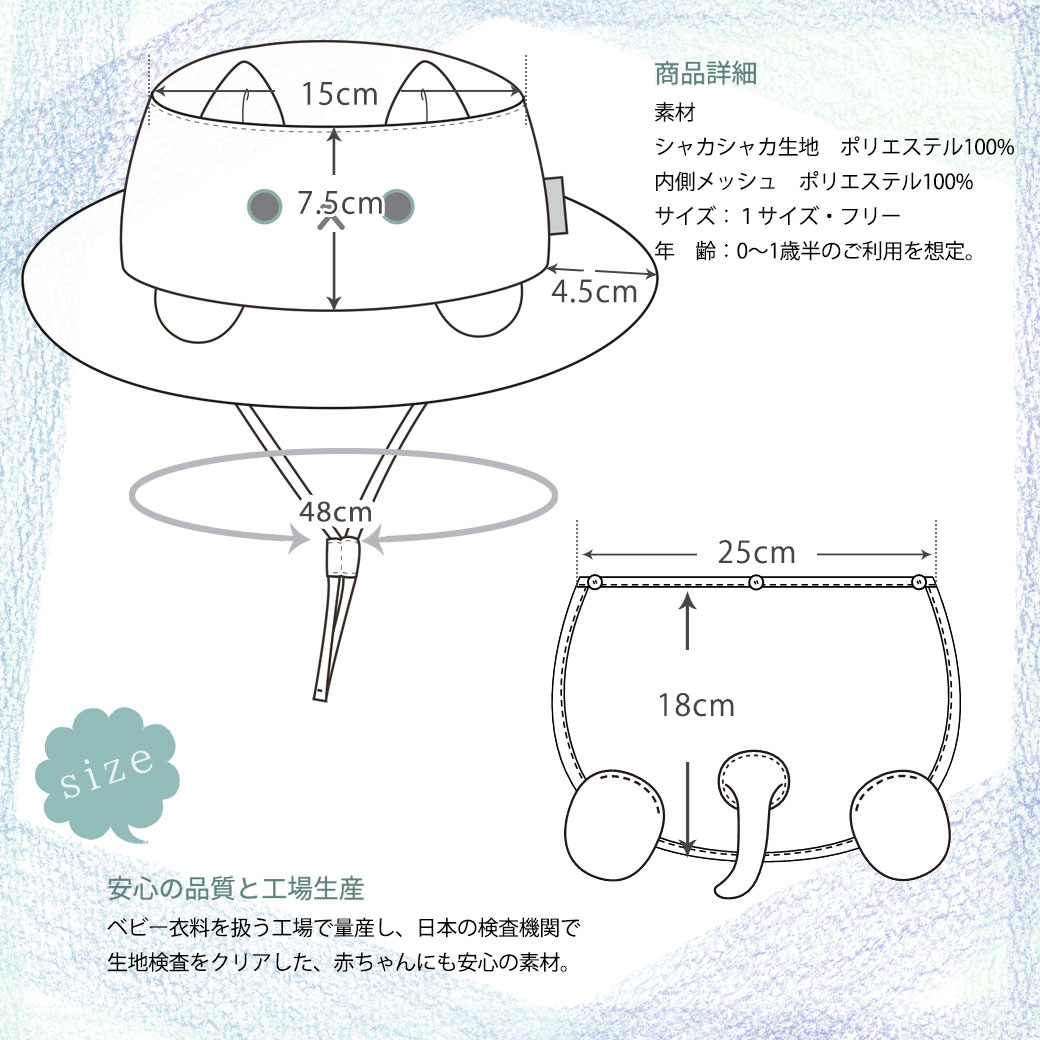ねこサファリハット【サイズ48cm・オフホワイトカラー】