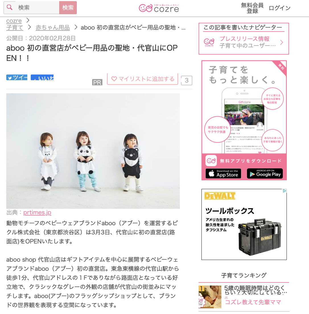 cozre[ コズレ ]子育てマガジン にて